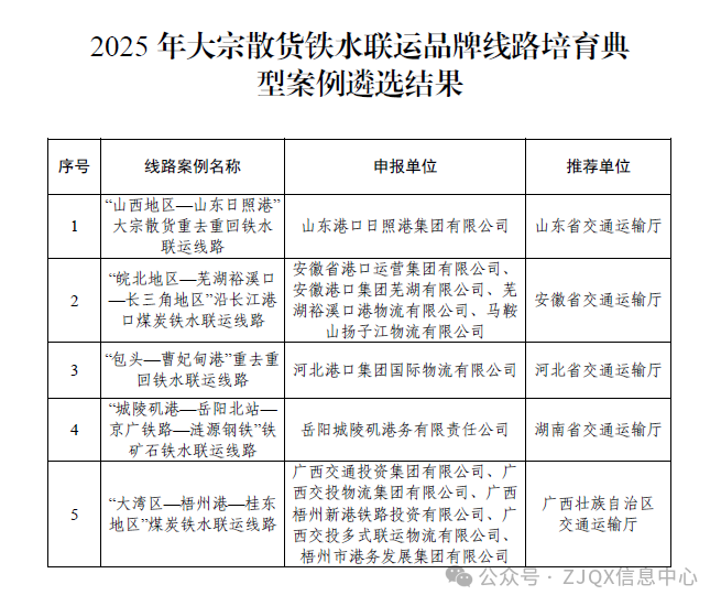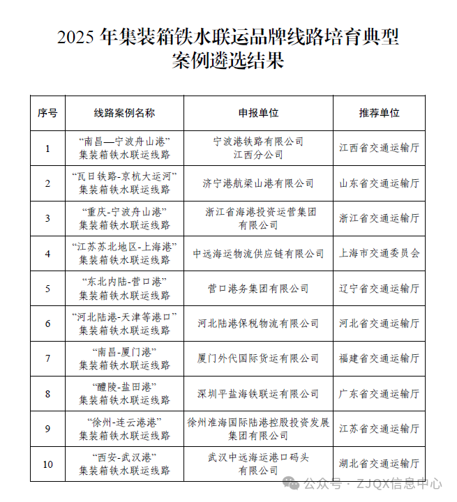 交通运输部、国家铁路局、中国国家铁路集团有限公司联合发布2025年铁水联运品牌线路培育典型案例