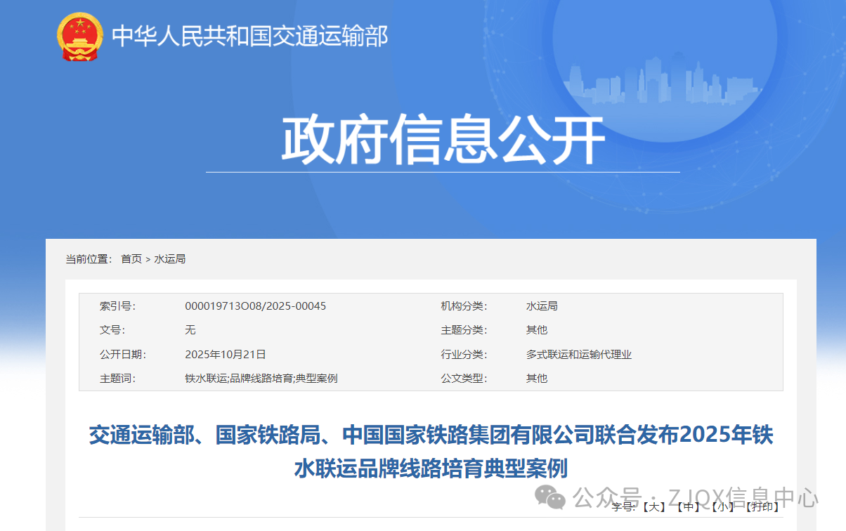 交通运输部、国家铁路局、中国国家铁路集团有限公司联合发布2025年铁水联运品牌线路培育典型案例